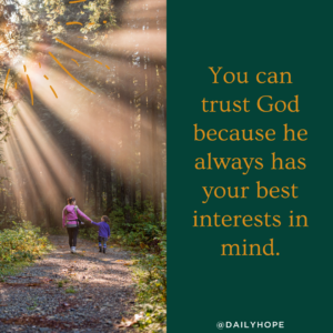 You can trust God because he always has your best interests in mind, even if you can’t see it right away.