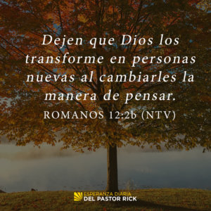 “Dejen que Dios los transforme en personas nuevas al cambiarles la manera de pensar”. Romanos 12:2b (NTV)