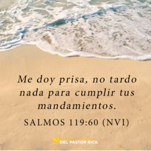 “Me apresuraré sin demora a obedecer tus mandatos”. Salmos 119:60 (NTV)