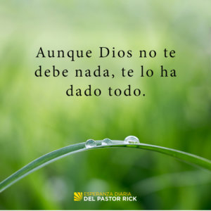 Pero, aunque no te debe nada, te ha dado todo. Te dio su propio Hijo. Te dio el regalo de la vida eterna. Te dio la promesa de estar con Él para siempre. Esos son grandes regalos.