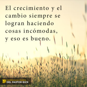 No es cómodo romper un hábito. Es incomodo enfrentar un miedo. Es incomodo ir a algún lugar en el que nunca has estado o perdonar a quienes te han herido. Pero crecer y cambiar siempre viene a través de hacer esas cosas incómodas, y eso es bueno.