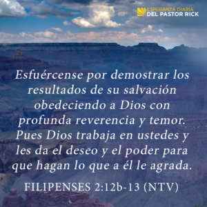 ¿Qué significa “llevar a cabo” tu salvación?¿De qué formas específicas estás haciendo un esfuerzo intencional para crecer espiritualmente? ¿Qué más puedes hacer este año?¿Por qué piensas que Dios requiere un esfuerzo de nuestra parte para el crecimiento espiritual?The post El Crecimiento Espiritual debe ser Intencional appeared first on Pastor Rick's Daily Hope.