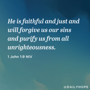 When we confess our sins, “he is faithful and just and will forgive us our sins and purify us from all unrighteousness” (1 John 1:9 NIV).