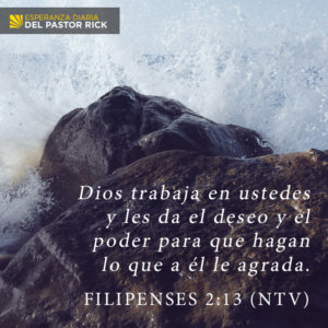 “Dios trabaja en ustedes y les da el deseo y el poder para que hagan lo que a él le agrada”. Filipenses 2:13 (NTV)