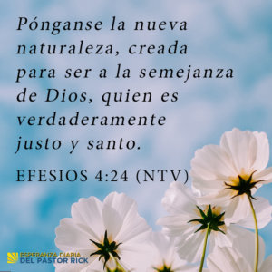 “Pónganse la nueva naturaleza, creada para ser a la semejanza de Dios, quien es verdaderamente justo y santo”. Efesios 4:24 (NTV)