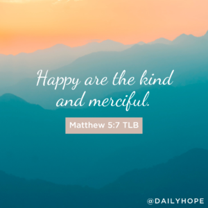 Jesus says in the Beatitudes, “Happy are the kind and merciful” (Matthew 5:7 TLB). Do you want to be happy? Then be merciful.