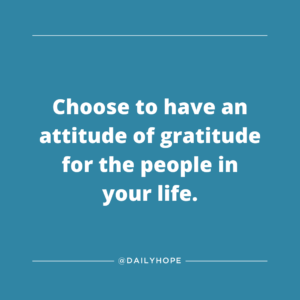 That’s why it takes effort on our part to choose to have an attitude of gratitude for the people in our lives. The longer our relationships last, the harder it may be to remember. But we experience an eternal impact on our relationships when we develop the habit of giving thanks to God when we think of our spouses, children, parents, siblings, neighbors, coworkers, and small group members.