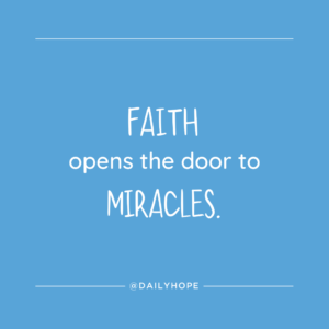 Faith opens the door to miracles. If you study the Bible and history, you’ll find that every time God moves on earth and does a miracle, it’s because somebody believes.