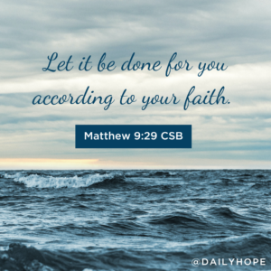 “Let it be done for you according to your faith” (Matthew 9:29 CSB).