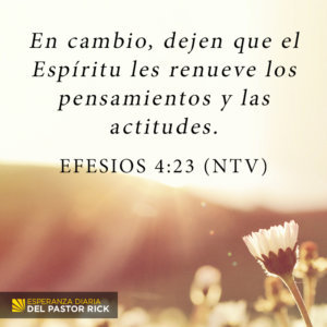 “Dejen que el Espíritu les renueve los pensamientos y las actitudes”. Efesios 4:23 (NTV)