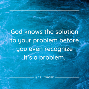 You need to understand this truth today: God always has the answer before you even know the problem. God is not worried your unsolvable problem. It’s not too late in the day for Jesus. He saw your problem long before you did. He knew it was coming, and he already had a plan for it. God knows the solution to your problem before you even recognize it’s a problem.