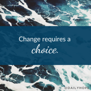 Change requires making choices. It’s not enough to dream of changing. It’s not enough to desire change. In order for you to change, you will need to make a decision. You must choose to change.