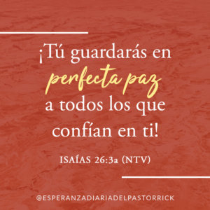 La Biblia dice: “¡Tú guardarás en perfecta paz a todos los que confían en ti; a todos los que concentran en ti sus pensamientos!“ Isaías 26:3 (NTV).