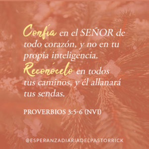 La Biblia nos promete: “Confía en el Señor de todo corazón, y no en tu propia inteligencia. Reconócelo en todos tus caminos, y él allanará tus sendas“ Proverbios 3:5-6 (NVI).