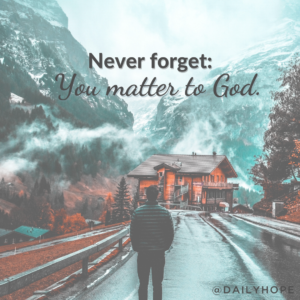 You matter so much to God that he underwent a rescue mission to find you. He came to Earth as a little baby so that one day he could die on a wooden cross for your sin.