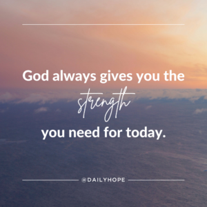 You may not feel very strong right now. But the strength you need will come when you need it. The Bible doesn’t say to ask God for your weekly or monthly bread. It says to pray, “God, give me my daily bread. I need just enough strength for today.”