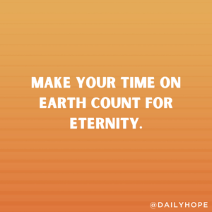 Our reward in heaven is going to be based on what we did here on earth. One day, we’re all going to stand before God, and he’s going to say, “What did you do with what you were given?” Do you want to say, “Well, I made a lot of money, retired, and died”?