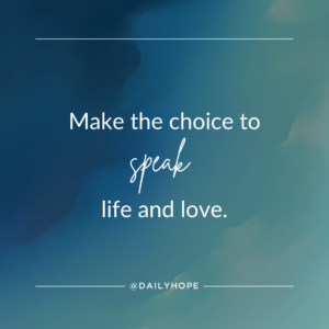 The next time you’re tempted to respond in anger, make the choice to speak life and love instead.