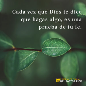 Cada vez que Dios te dice que hagas algo, es una prueba para tu fe. La pregunta es: ¿Confías en Dios o confías en tu instinto? ¿Confías en Su Palabra o confías en el mundo?