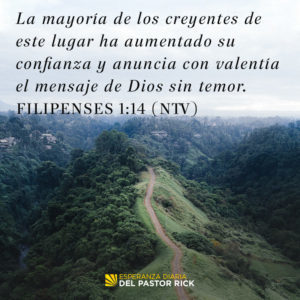“La mayoría de los creyentes de este lugar ha aumentado su confianza y anuncia con valentía el mensaje de Dios sin temor”. Filipenses 1:14 (NTV)