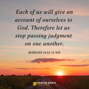 “Each of us will give an account of ourselves to God. Therefore let us stop passing judgment on one other.”