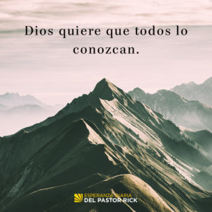Por eso es que necesitamos seguir alcanzando a las personas con las buenas nuevas de Jesús. Dios quiere que cada uno conozca los propósitos que Él tiene para sus vidas. Dios quiere que todos lo conozcan.