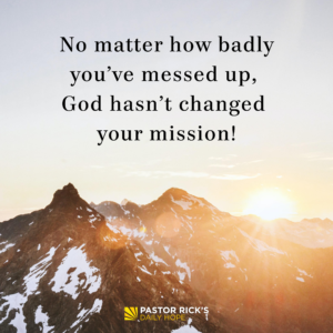 No matter how badly you’ve messed up, God hasn’t changed your mission. Maybe you’ve started to drift just a little bit. God still hasn’t changed your mission.