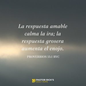 “La respuesta amable calma la ira; la respuesta grosera aumenta el enojo”. Proverbios 15:1 (RVC)