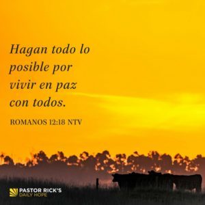 “Hagan todo lo posible por vivir en paz con todos”. Romanos 12:18 (NTV)