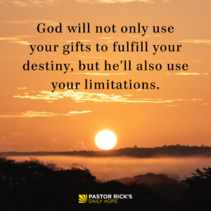 God will not only use your gifts to fulfill your destiny, but he’ll also use your limitations.