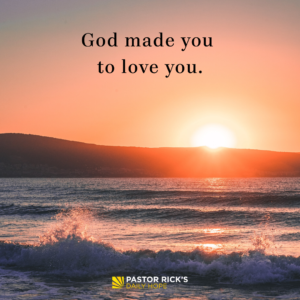 God made you to love you (see Jeremiah 31:3). God created you to love you, and he wants you to learn to love him back. This is the most important reality of life.