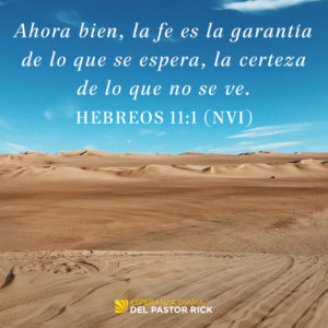 “Ahora bien, la fe es la garantía de lo que se espera, la certeza de lo que no se ve. Gracias a ella fueron aprobados los antiguos”. Hebreos 11:1-2 (NVI)