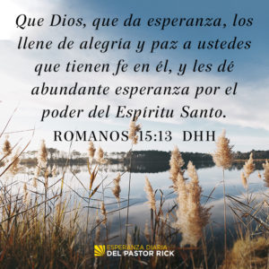 En Romanos 15:13, la Biblia dice, “Que Dios, que da esperanza, los llene de alegría y paz a ustedes que tienen fe en él, y les dé abundante esperanza por el poder del Espíritu Santo” (DHH).