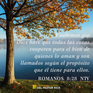 “Y sabemos que Dios hace que todas las cosas cooperen para el bien de quienes lo aman y son llamados según el propósito que él tiene para ellos”. Romanos 8:28 (NTV)