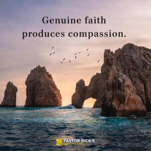 Genuine faith produces compassion. It says, “I will help you with your burden and show you the love of Christ.” Our faith is seen by what we do.