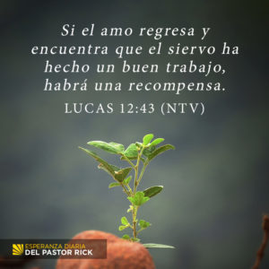 “Si el amo regresa y encuentra que el siervo ha hecho un buen trabajo, habrá una recompensa”. Lucas 12:43 (NTV)