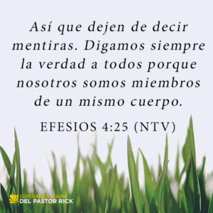 “Dejen de decir mentiras. Digamos siempre la verdad a todos porque nosotros somos miembros de un mismo cuerpo”. Efesios 4:25 (NTV)