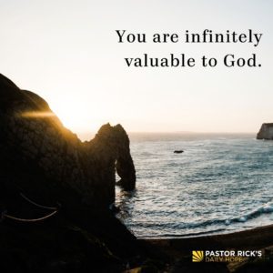You are infinitely valuable to God. God created you. Jesus died for you. God puts his Spirit within you. And God wants you to be with him forever in eternity. That’s quite an investment God has made in you! He would not have done that if you were not of the greatest worth to him.