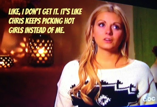 Kelsey survives her panic attack to the disappointment of the other girls. After the rose ceremony, Mackenzie, the dental assistant, and some other chick I don't think I've ever seen before go home.