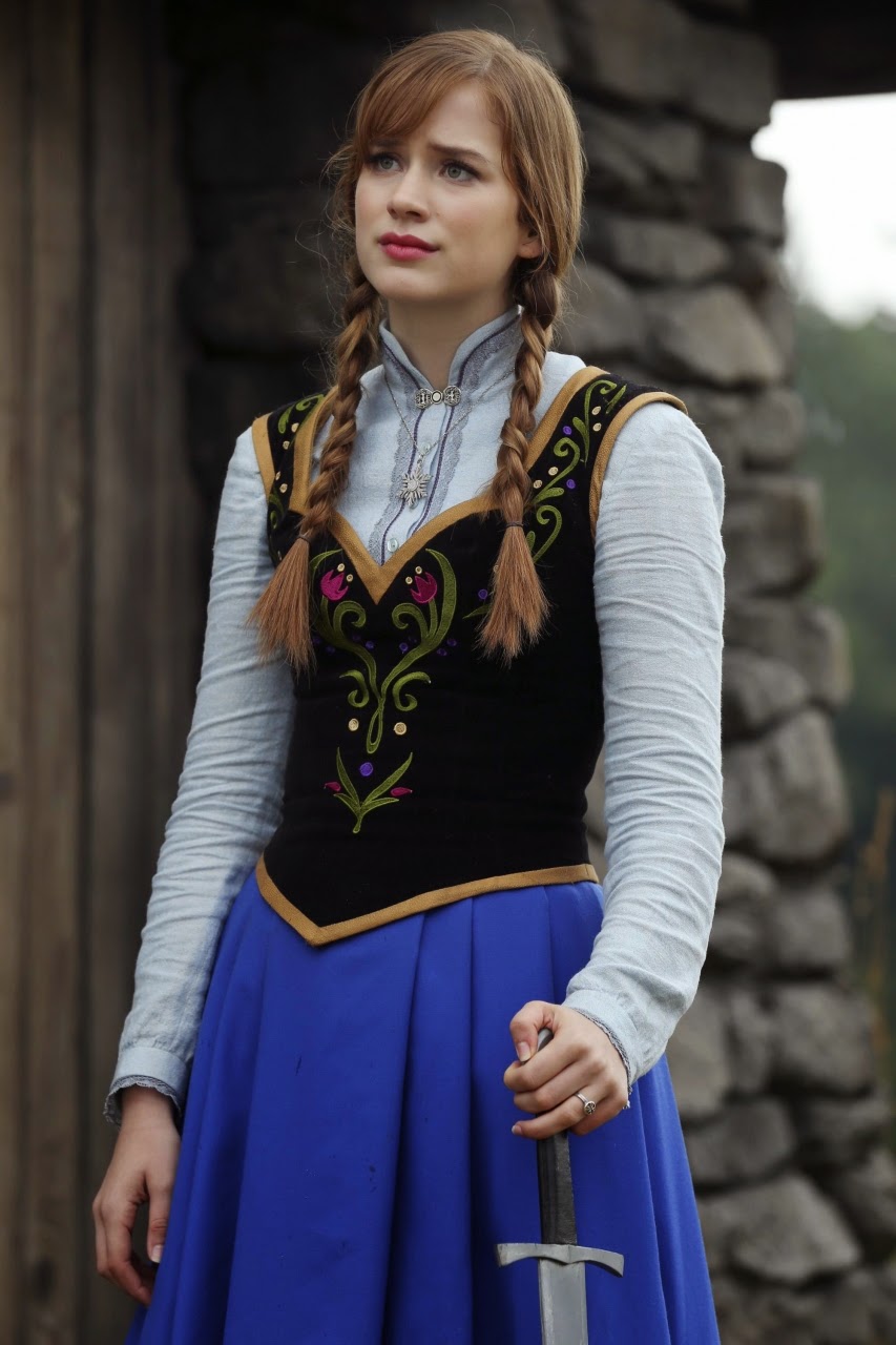 Anna travels through the enchanted forest and ends up at the cabin of ... David (with long hair, Jesus style). Apparently before David became the fake prince he was a friend of Kristoff's. Anna tries to keep her 'mission of magic' a secret, and she tells him her name is Joan.