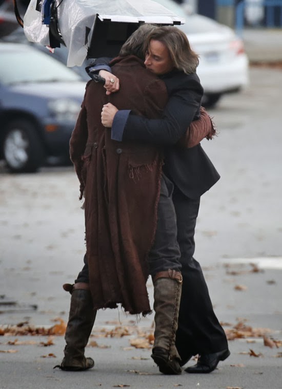 entertainmentoutlook.comBelle and Mr. Gold embrace and thank God, ABC has spared us a kissing scene with these two. Wendy Darling comes off the boat, and hugs her much older brothers, John and Michael. They plan to fly back to England.Good idea. Storybrooke is crazy pants.