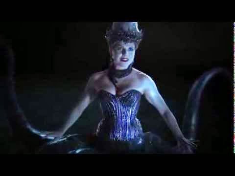 The Evil Queen laughs from the wharf, perched on a wooden keg. She took the mermaid's voice on purpose. The only thing worse than telling the Prince and being rejected is never having the chance to find out the truth; never having a chance at a happy ending. Ariel cries...silently and does a full body breech. When the Evil Queen returns triumphantly to her castle, the real Ursula appears and threatens her to never impersonate her again.