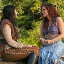 Regina and Mr. Gold go to the Neverland beach. She takes the conch shell and sounds the horn across the ocean. Ariel arrives looking really pissed. Since mermaids can travel between realms, she can go to Storybrooke to get the 'special death device' from Mr. Gold's shop. Regina gives her back her voice and tosses her a magical cuff, promising that this time she can have legs and control over them. When Ariel still refuses to help, Regain plays her trump card—just like all the other fairy tale characters, Prince Eric was whisked away to Storybrooke as well.