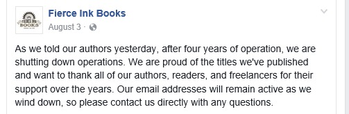 Again, I'm grateful for what Fierce did for my writing career and I wish the team the best of luck in the future. They're all very talented and I'll be championing their future endeavors.