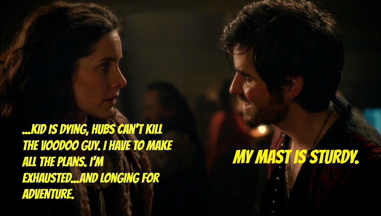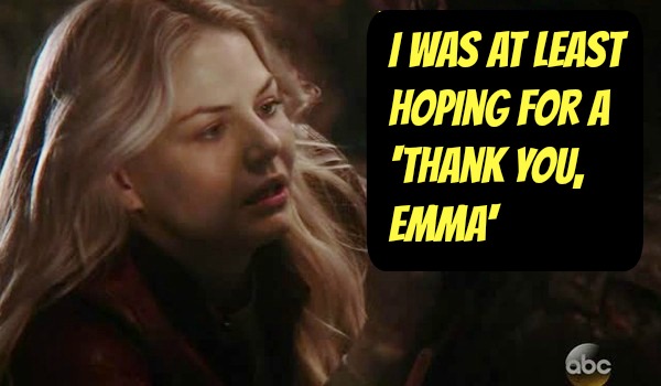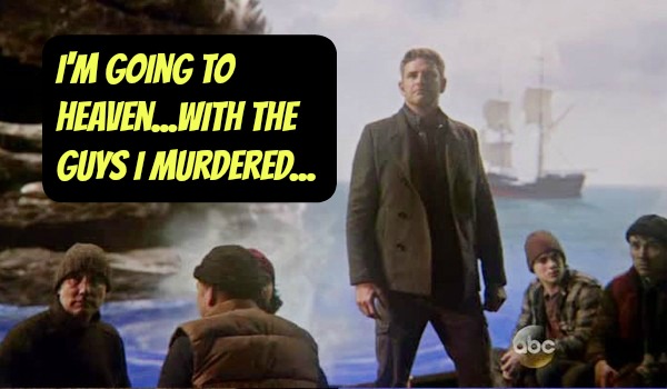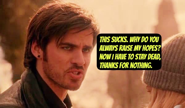 #1. From Episode 20, when Emma performed a heart transplant on Hook so he could leave the Underworld, except it didn't work because she forgot he's a ghost while his real body is decaying back in Storybrooke cemetary. Then he got all emo and sulked about how she never should have come to rescue him. Grow up, dude.