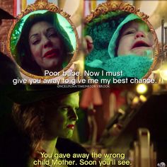 Zelena is an emotional mess. Her baby has a scratch on her cheek and she can't heel it with magic. Feeling like a pathetic mother, she gives the baby back to Robin and Regina, and begs them to keep her safe from Hades.