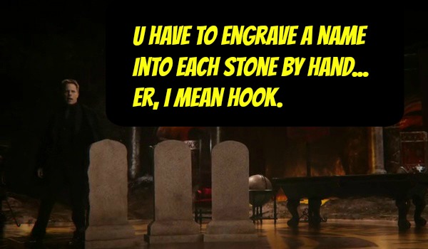 onceuponatimeabc.comWhile everyone is celebrating Hook and Hades continue to have their meaningless debate, until...Hades reveals the twist. For every soul that our heroes free from the Underworld, one of them will have to take that soul's place. And Hook has to choose who by carving their names on the gravestones!