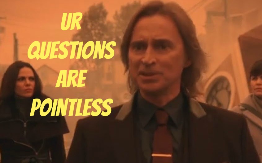 Or better title, "Your Questions Are Pointless"The mid-season premiere opens with Emma waking up in her yellow bug. Neal pops up from the backseat and explains this is his happily ever after and he's totally content to live in the abandoned amusement park by himself.