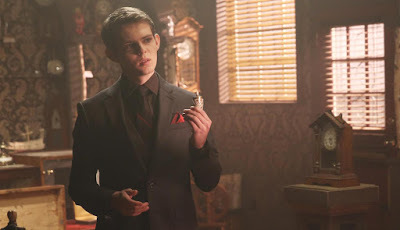 The show starts with Zelena celebrating her birthday, she doesn't know the date but that doesn't stop her from reliving the moment Cora gave her up, and that's what she commemorates instead. While enjoying this morbid flashback, the flying monkeys drop off the Scarecrow. Apparently, Zalena needs his brain to make a time travel spell to go back to that moment to save her baby self.