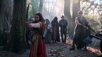 Back in the Enchanted Forest we see a teen Snow White be challenged by Evil Regina to take on a gang of bandits who are robbing the peasant folk of their kingdom. Snow White hustles from the castle and into the forest only to fall down a big hole.
